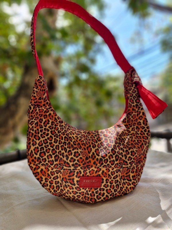 Cartera confeccionada en tela satinada, con correa y base acolchonada con costuras decorativas. Regulable hasta 100 cm.