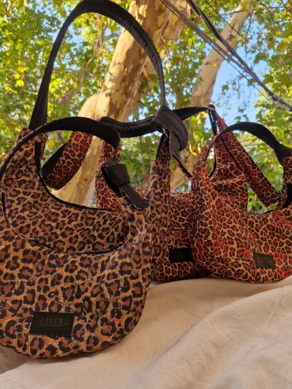 Cartera confeccionada en tela satinada premium, con correa y base acolchonada con costuras decorativas. Correa regulable hasta 50 cm.