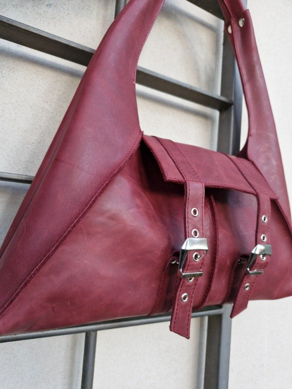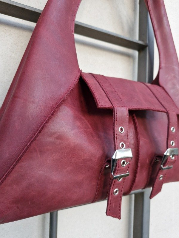 Confeccionada en cuero rígido.