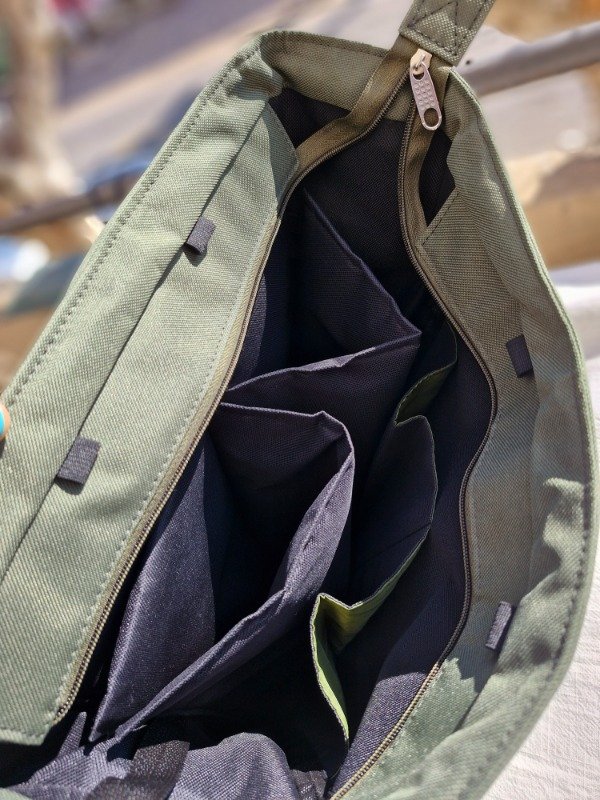Bolsillos > interno doble, trasero plano con cierre, delantero extensible con cierre, de base con posibilidad de adicionar elásticos.