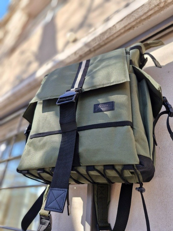 Tamaño > 42cm alto x 30cm ancho y 15cm de fuelle, regulable en sus extremos. Con apertura mediante cierre y tapa con hebilla de acetal. Con cuelga llaves, carry on + porta bombilla y lapicera (en caso de no escoger los bolsillos laterales con hebillas y dados, vienen los básicos).